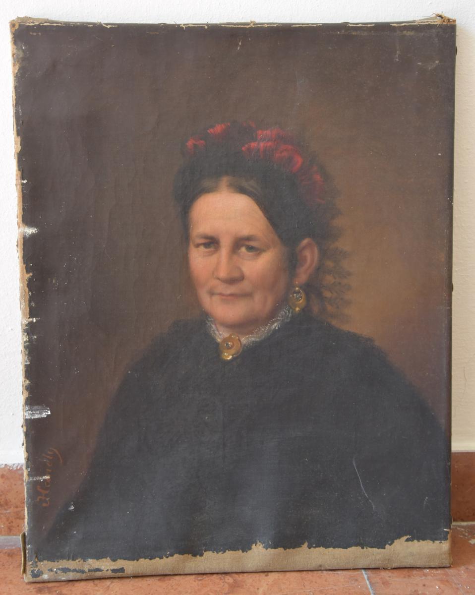 Plechschmidt Frigyes kőszegi polgár nejét ábrázoló olajfestmény vásárlás útján jutott a múzeum gyűjteményébe. A fekete hajú, középkorú, szembenéző hölgy piros díszes főkötővel, ékszerekkel, fekete ruhában látható, a kép bal alsó felén a festő szignója olvasható. A festmény alsó sávjáról lepergett a festék, több helyen megfigyelhető volt rajta szennyeződés, sérülés, karcolás. Restaurálása időszerű volt további állapotromlását is megelőzendő.